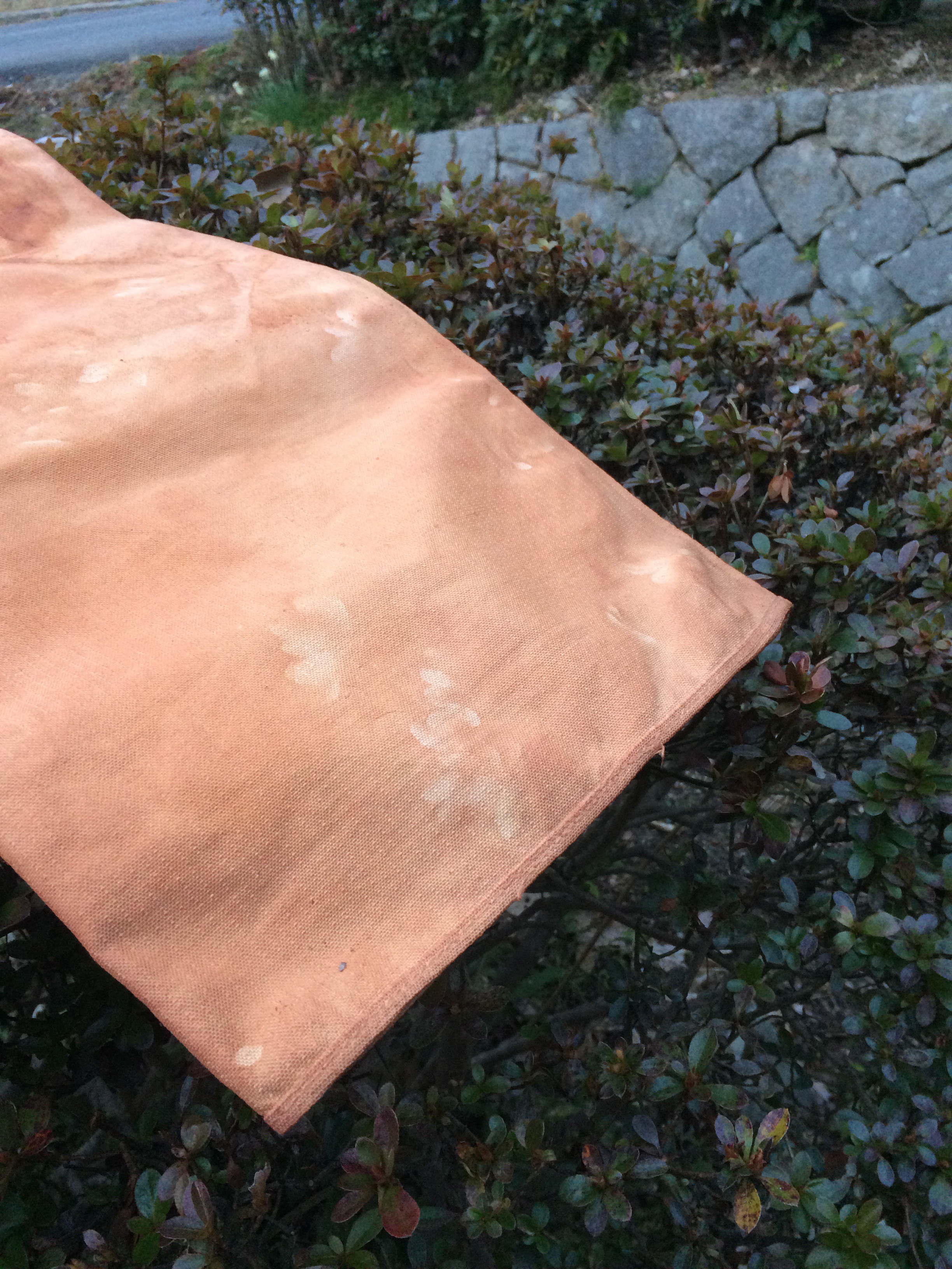 同じ日に同じ柿渋液で同じように染めたのですが、色の出方がだいぶ違うようになってしまいました。